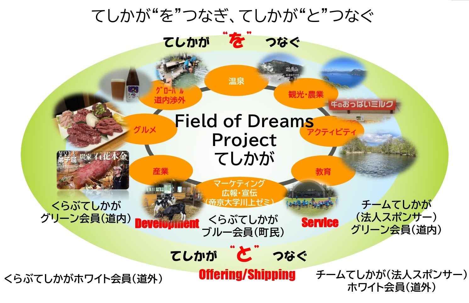 「特定非営利活動法人Field of Dreams Project(フィールドオブドリームスプロジェクト)てしかが」は、映画“Field of Dreamsをモデルに、同町内の豊かな自然環境を活かした「世界でいちばん美しいフィールド」の共創を目指しています。具体的には、夏は野球やソフトボールを楽しめるボール・バーク、冬は雪・氷上で楽しむナチュラルリュージュコースやトレイルコースで、これらを世界でいちばん美しいスポーツファシリティへ整備を進め、様々なイベント開催により地域住民のプライド醸成とスポーツ享受はもとより、多くのビジターツーリストたちを招くことで同町の経済循環を促進させます。