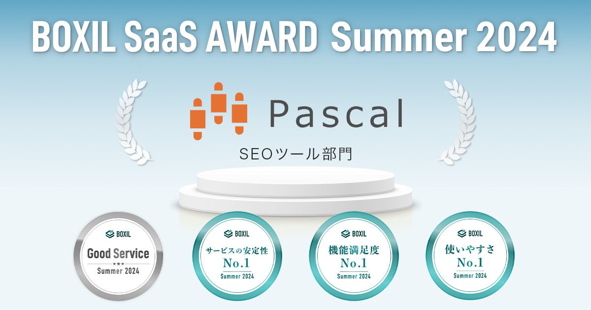SEOツール「パスカル」が「BOXIL SaaS AWARD Summer 2024」SEOツール部門で「Good Service」ほか3つのNo.1に選出
