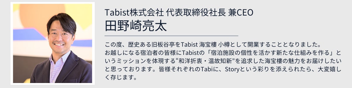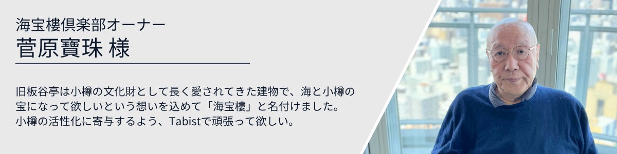 今回のフラッグシップ化にあたり、「Tabist 海宝樓 小樽」のオーナーである菅原寶珠氏からは小樽の観光推進活性化への期待の声が寄せられました。