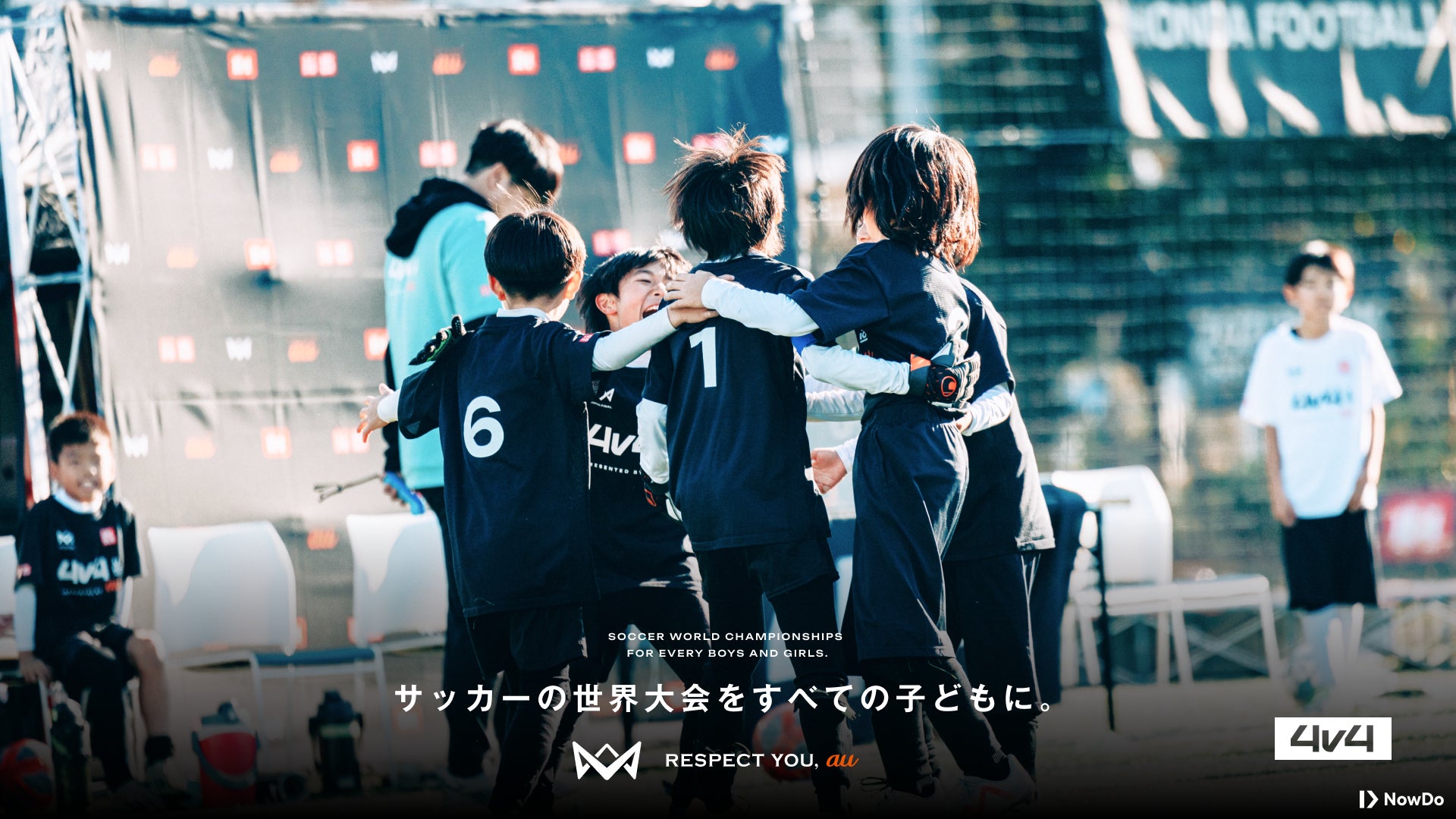 「4v4」とは日本のサッカー界をさらに盛り上げるべく、サッカー界の本田圭佑が考案した新しい4人制サッカー全国大会です。本大会は「サッカーの世界大会を全ての子どもに」というミッションのもと、育成年代の小学生の子ども(U10、U12)向けに2023年に開発された新しい競技です。ルールは10分1本勝負であり、交代は自由です。また、ショットクロックは20秒で、GKはフィールドプレイヤーとして果敢に攻撃に参加することができる、という全く新しいサッカーのルールです。本大会では子どもたちの自主性を大切にするためにベンチには監督やコーチは存在しないことや、一度負けて終わりではなく何度も挑戦できるようなポイント制度などを取り入れています。子どもたちはシーズンを通じてポイントを多く獲得することでJAPAN CUPに出場し、日本一を目指します。子どもたちが社会に出て必要な、自ら考え行動する力を育み、未来のサッカースター候補を育成することで、日本のサッカー界全体の成長につなげます。
