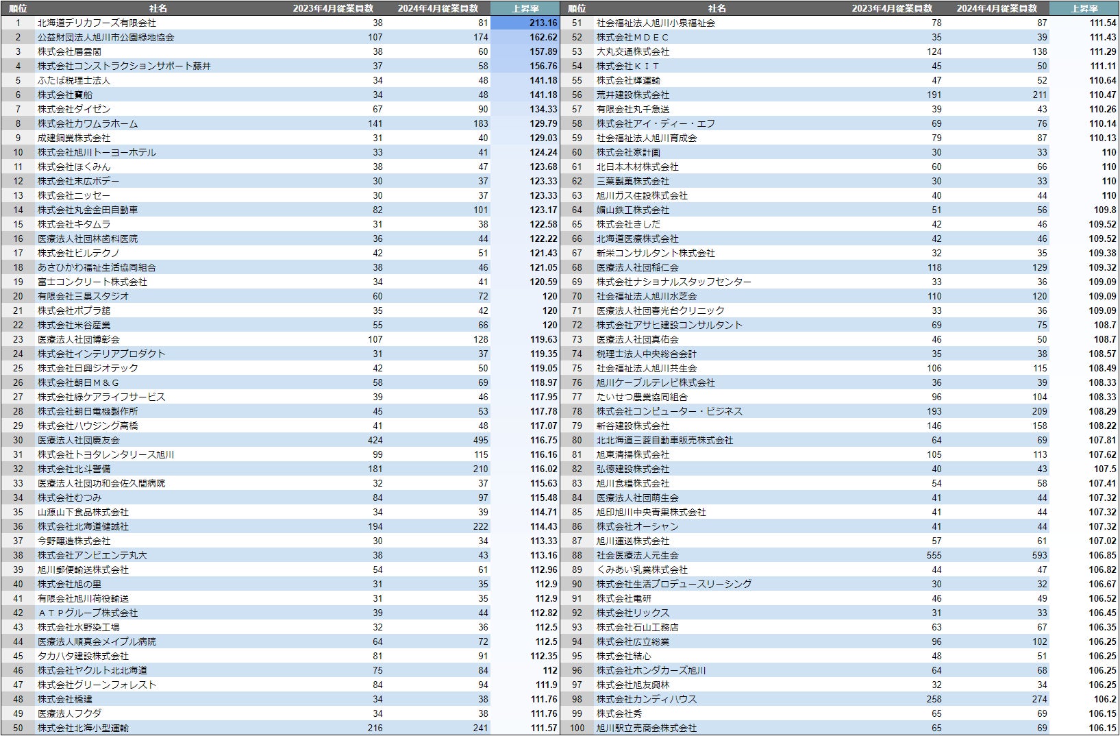 【旭川市】成長企業ランキングTOP100!/SalesNow DBレポート