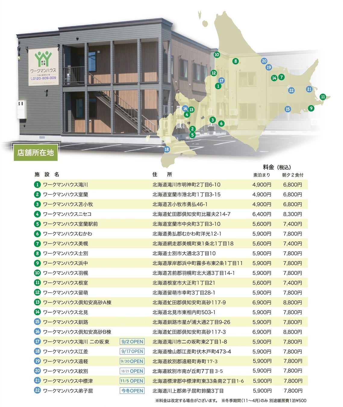 ワークマンハウス 店舗・料金一覧(2024年8月時点)