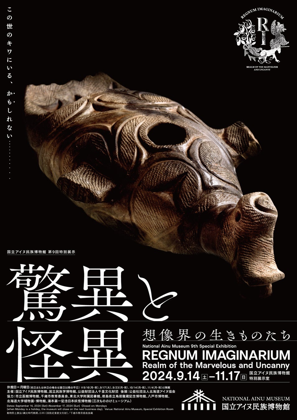 アヌココㇿ アイヌ イコロマケンル 国立アイヌ民族博物館(館長:佐々木史郎、所在地:北海道白老町)では、2024年9月14日(土)から2024年11月17日(日)まで、第9回特別展示「驚異と怪異―想像界の生きものたち」を開催いたします。