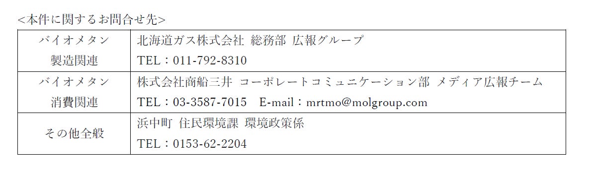 浜中町、浜中町農業協同組合、タカナシ乳業株式会社、北海道ガス株式会社、株式会社商船三井、株式会社商船三井さんふらわあは、酪農業が盛んな北海道浜中町において家畜糞尿や同町で排出される有機物等からバイオメタンを製造し、道内の工場や道内港湾に寄港する船舶で低・脱炭素エネルギーとして活用することに向けた検討を開始しました。