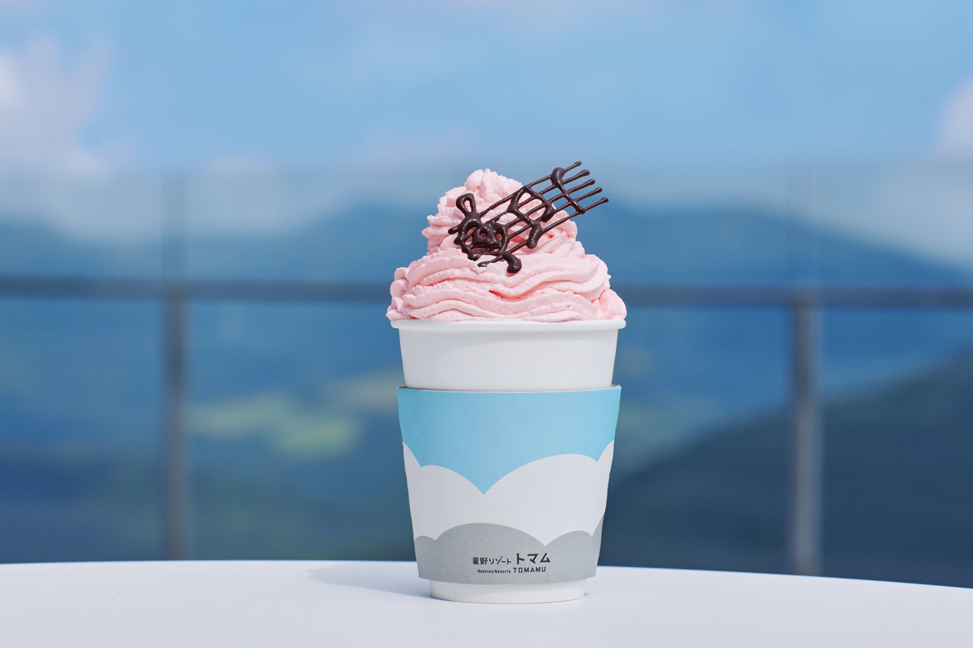 雲海テラスに併設する屋内カフェ「雲Cafe」では、期間限定でオリジナルドリンクを提供します。ホットココアに、「 LovePiano」の色合いをイメージしたピンク色のイチゴクリームをのせ、その上には、五線譜と音符をかたどったチョコレートをあしらいました。クリームが溶けると優しい甘さを感じるホットココアは、早朝の肌寒い雲海テラスにぴったりです。