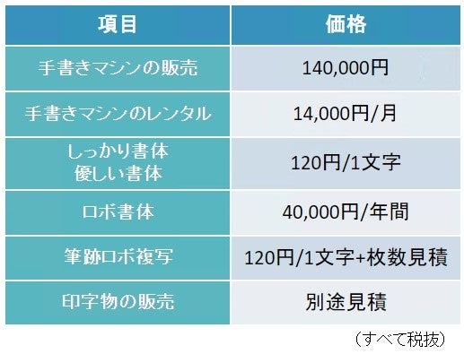 ※自動手書きマシンのレンタル 14,000円/月