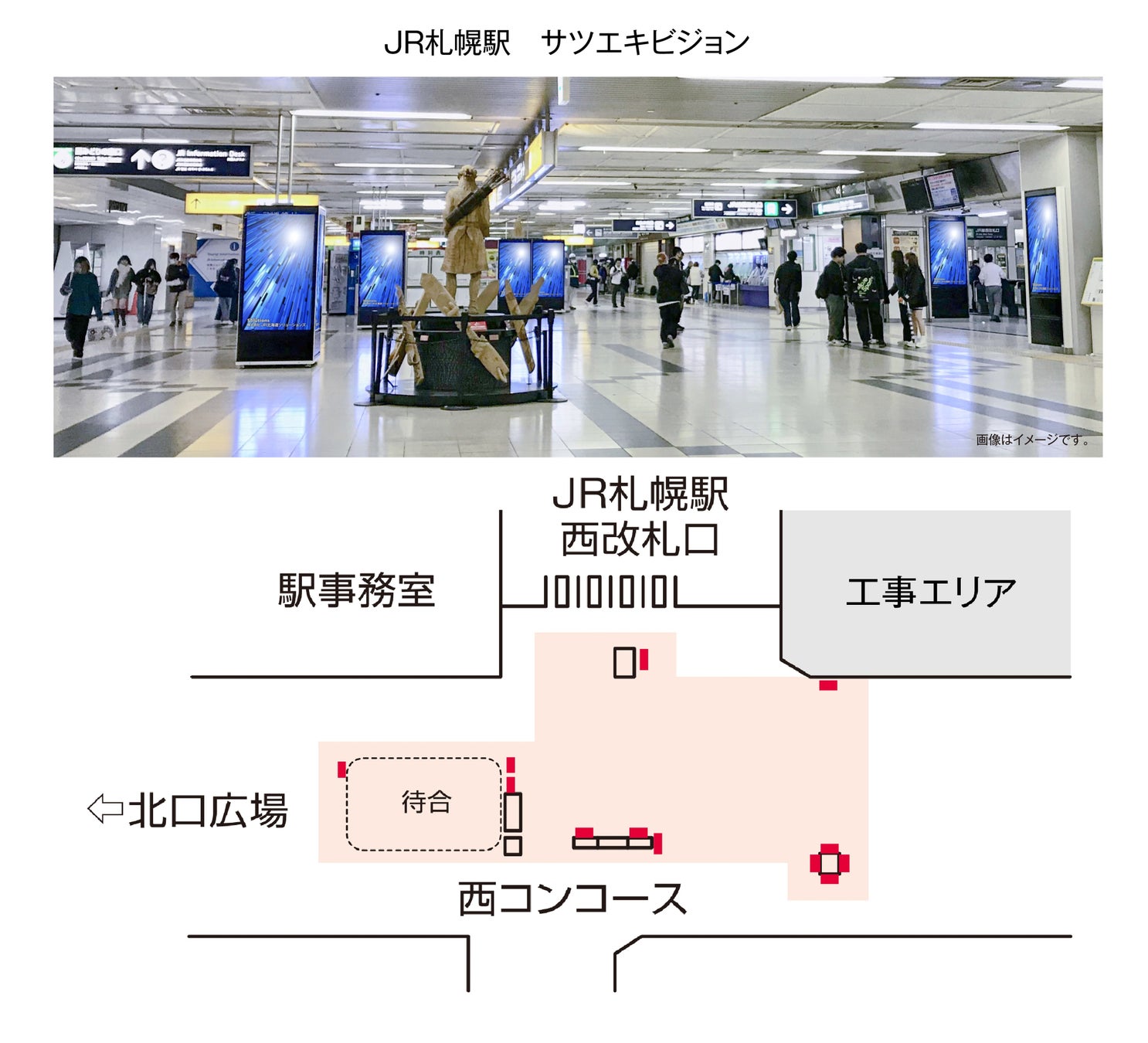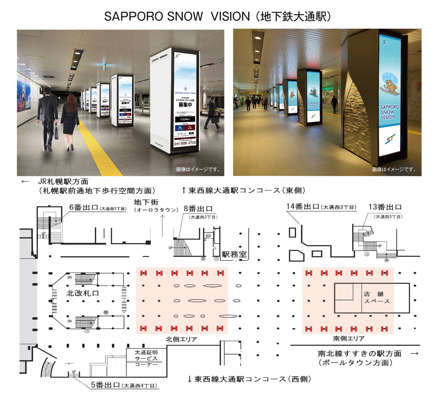 - 対 象 商 品:「JR札幌駅サツエキビジョン」 × 「SAPPORO SNOW VISION (地下鉄大通駅)」期 間:2024年10月7日(月) ~2024年12月23日(月) 放映開始分放映駅面数:JR札幌駅西改札前12面、地下鉄大通駅北側/南側 各48面(片側・両側より選択)