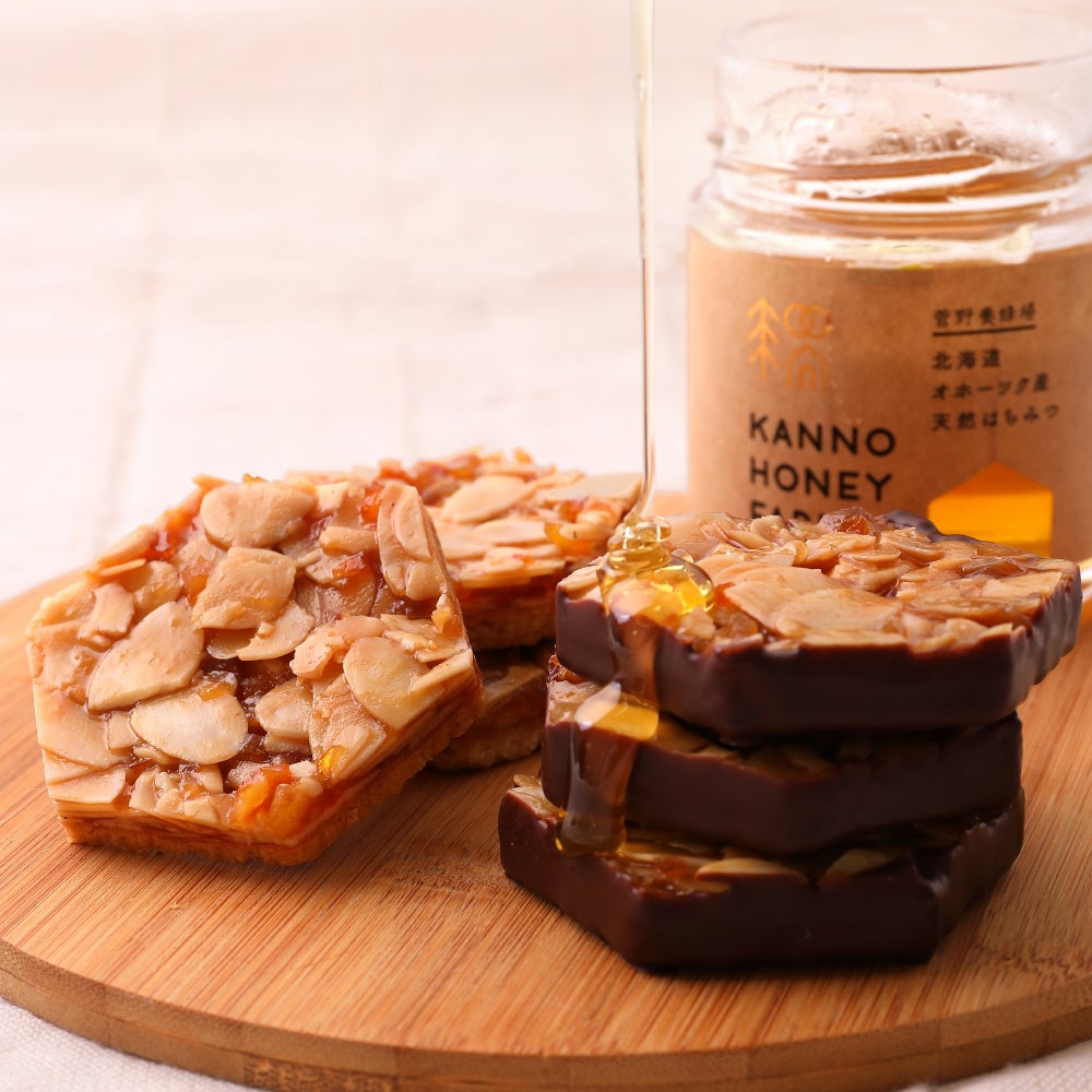 創業90年と、戦前から続く養蜂家。現在は、北海道訓子府町に店舗と養蜂場を構え、「安心・安全」をモットーに天然はちみつにこだわりつづける。ミツバチには、病気にならないようにする抗生物質を一切あたえず、またミツバチが訪れる花も自然に自生する花からとれるように、場所もこだわるほど。今回は、菅野養蜂場で採取する天然はちみつを用いて、計7ブランドが、新作スイーツ・惣菜を作りました。