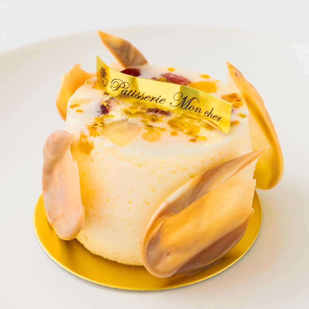 たんぽぽはちみつの甘味や香りが楽しめるジュレと、爽やかな酸味のレモンカードが絶妙な美味しさです。ほんのり白ワインの香るはちみつムースで包みました。