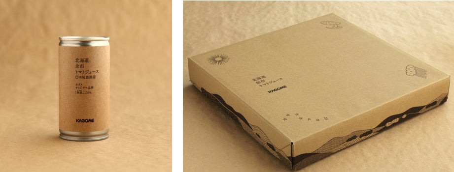 「北海道余市トマトジュース」は、トマトの定植や収穫作業を障がいを持つ方の雇用機会にするため、北海道余市町の生産者水尻さんとカゴメが二人三脚で作り上げたトマトジュースです。「トマト栽培で障がいを持つ方と地域の農業を元気にしたい」という思いが詰まっております。化粧箱の外周には、余市町の魅力を存分に伝えるため、水尻農園の近くにある高台から余市町を360度見渡した風景を描いております。原料となるトマトは、当社が10 年がかりで開発した「爽果(さやか)」を使用しており、青臭みが少なく、酸味と甘みの絶妙なバランスが特徴です。非常にデリケートなこのトマトは、皮が薄く割れやすい為、水尻さんが日々畑の様子を見ながら生育状況を見守り、最適なタイミングで丁寧な手収穫を行っています。