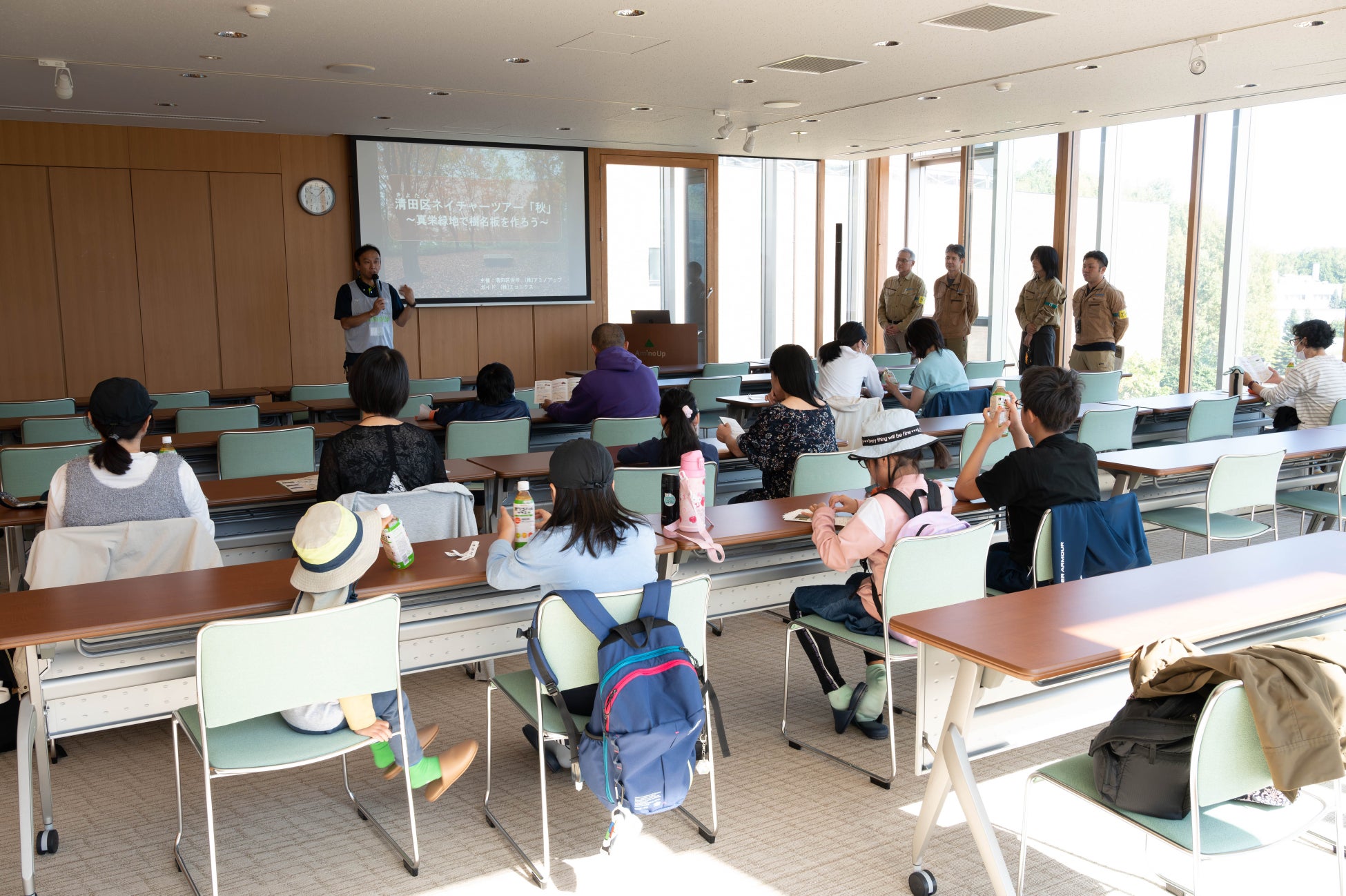 株式会社アミノアップ(北海道札幌市、代表取締役会長 小砂憲一、代表取締役社長 北舘健太郎)は、2024年10月5日に札幌市清田区との共催で今年4回目となる『清田区ネイチャーツアー「秋」〜真栄緑地で樹名板を作ろう〜』を開催し、公募によって集まった札幌市民が樹名板の製作と取り付け、株式会社アミノアップの工場見学を行いました。2022年春にスタートしたこのツアーは、季節ごとに年4回行われ、3年目を迎えました。