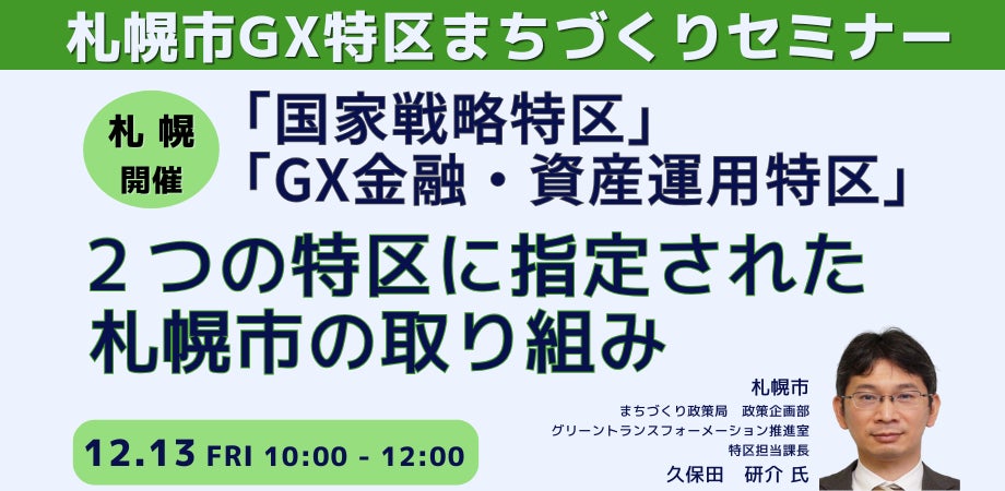 【JPIセミナー】「”国家戦略特区” ”GX金融・資産運用特区”2つの特区に指定された札幌市の取り組みと今後の方向性について」12月13日(金)<札幌開催>