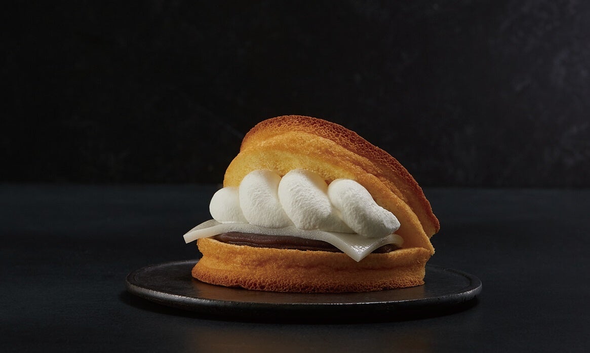 ふわっふわしっとりなめらかなシルキー食感の特製オムレット生地。お餅は千秋庵特製の絹のようなやわらかな求肥を厚さ4 ㎜に仕上げ、甘さを抑えた巴里銅鑼専用の上品なこしあん、たっぷりの生クリーム、厳選したそれぞれが一つになって至極のおいしさを創り出します。