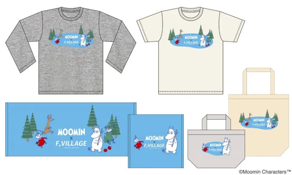 11月30日(土)から、リトルミイが投げるリンゴをムーミントロールが木の枝で打とうとしている姿が描かれたムーミンとF VILLAGEのロゴグッズが、オフィシャルオンラインストア ・オフィシャルストア各店で販売予定!