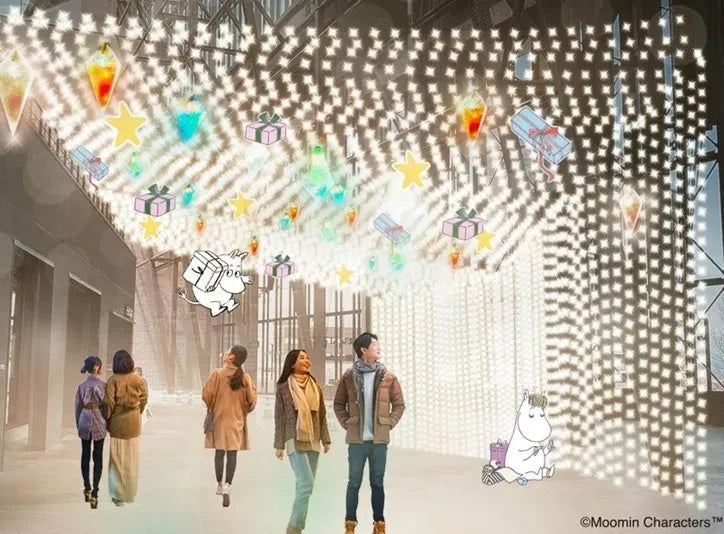 「そらとしば by よなよなエール」の前に長さ約40m、約13,000球の電飾を使用したイルミネーション ロードが出現します。ムーミン谷の冬をイメージした幻想的な空間が広がります。