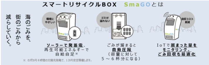 太陽光発電機・蓄電機能を備えており、溜まったゴミ箱のゴミを1/5に圧縮します。また、通信機能により設置場所周辺のゴミの集積状況を管理・分析できるため効率的なゴミの回収作業により街の美化を実現しています。スノーリゾートへの設置は、本施策が初めてとなります。