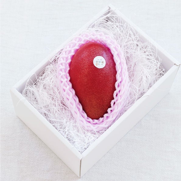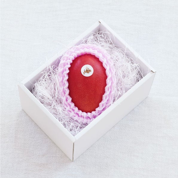 小さめの十勝マンゴー1玉です。お子様に食べてもらいたいという思いでつくられたギフトBOX。