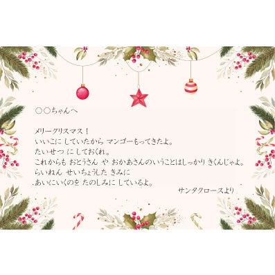 希望者にはサンタクロースからの手紙も同封可能で、生産者の子供達に喜んで欲しいという気持ちのこもったギフトBOXとなっている。