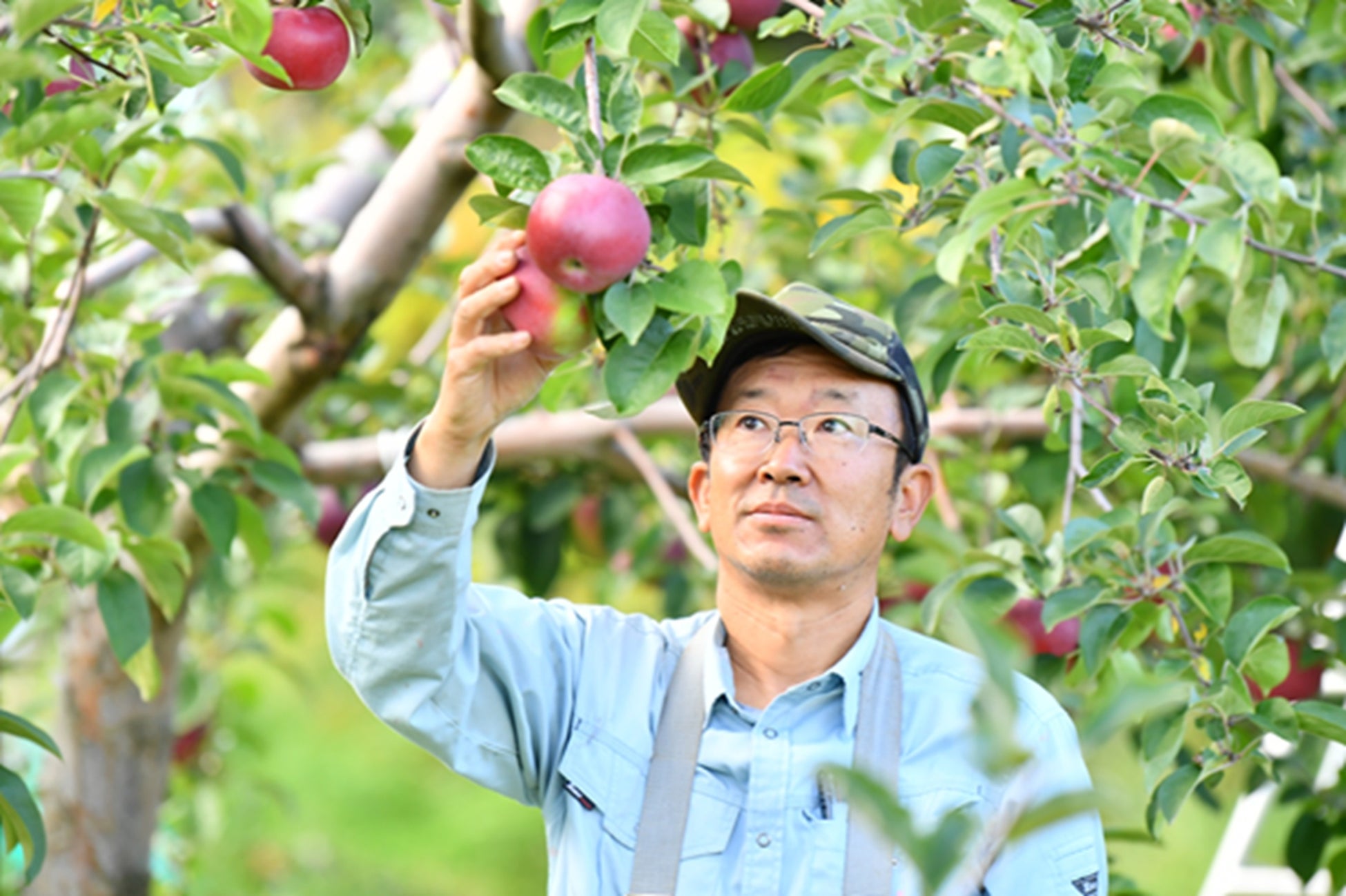 オホーツク菅内に僅か2軒残るりんご園の1軒で、消滅寸前のオホーツクりんご栽培を産地復活させ次世代に繋ぐため奮闘。減農薬、有機肥料主体で育てたりんごを直売や産地直送によって全国のファンに届けている。