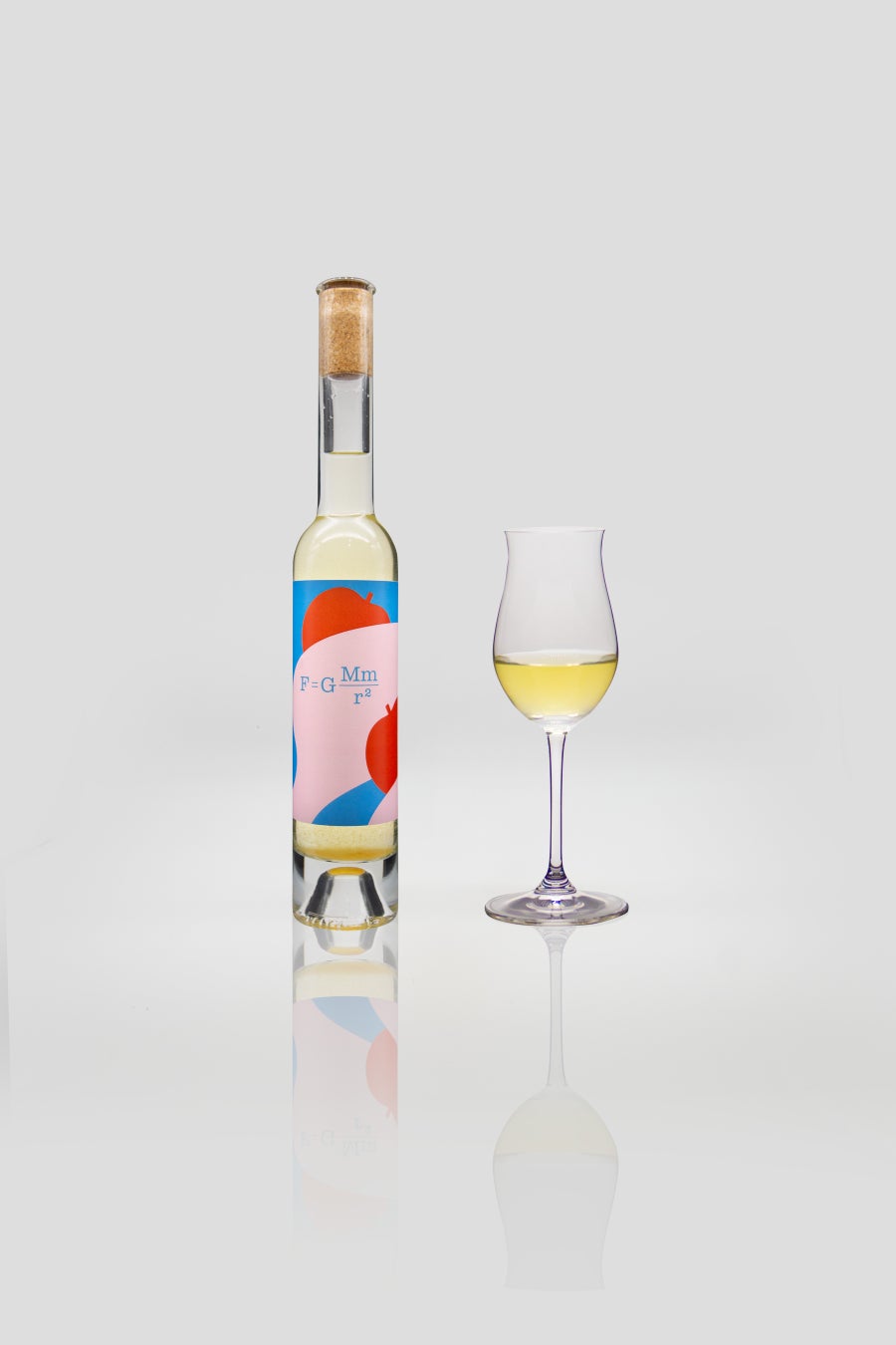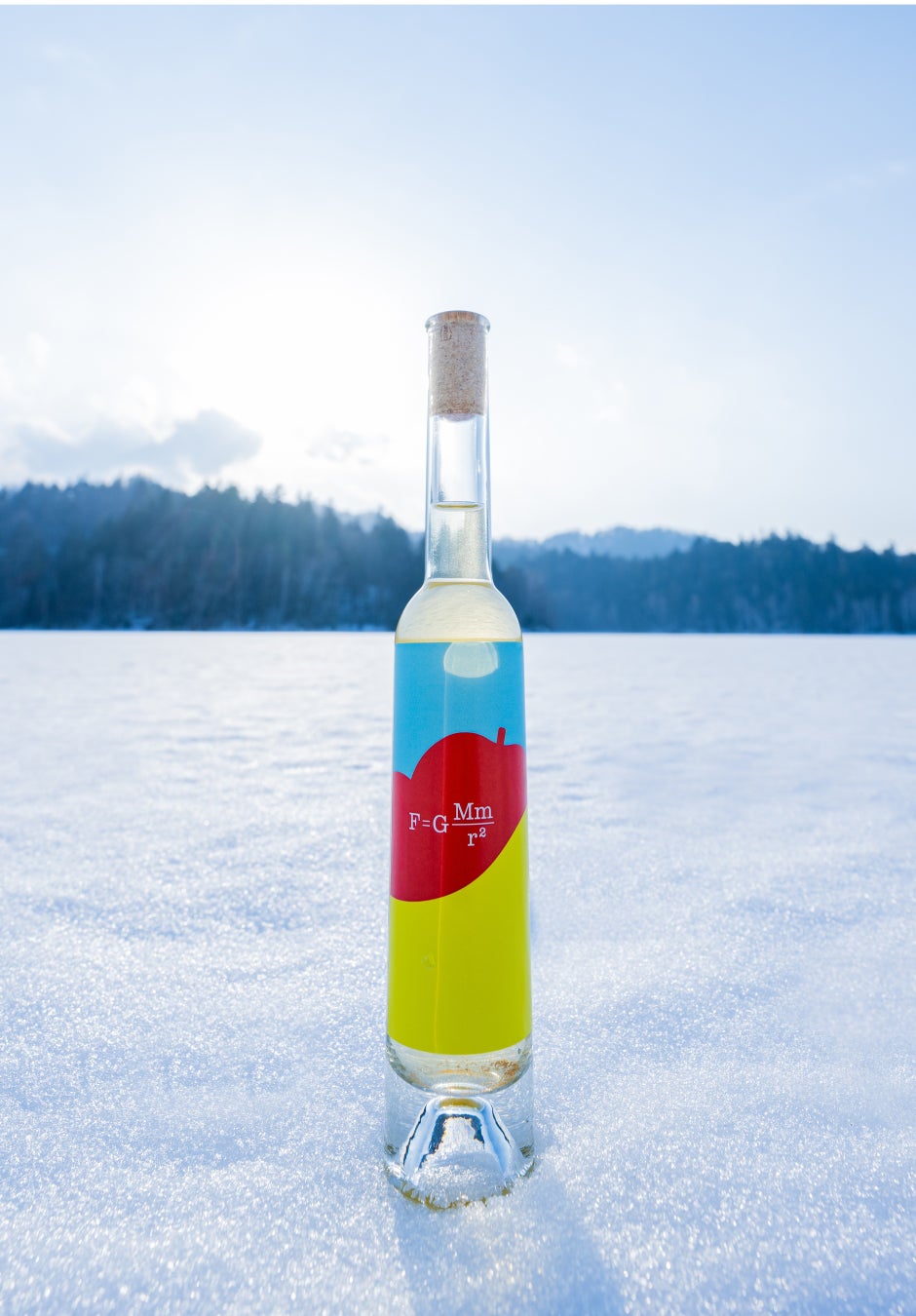 ニュートンが万有引力の法則に気づくきっかけになったとされる「りんご」から着想を得て、このシードルが引力のように、いろいろな人を引きつけ合うきっかけになって欲しいとの思いを込めた商品名です。