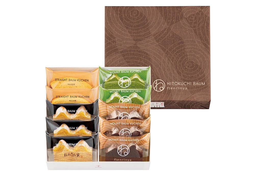 上質な味わいはそのままに、食べやすく上品なひとくちサイズのバームクーヘン詰合せ。2つの代表作『マウントバーム しっかり芽』『ストレートバーム やわらか芽』、冬限定『マウントバーム ブラウニー』、芳醇宇治抹茶⾹る『マウントバーム お抹茶』。4種の味わいを⼀度にお楽しみいただけます。