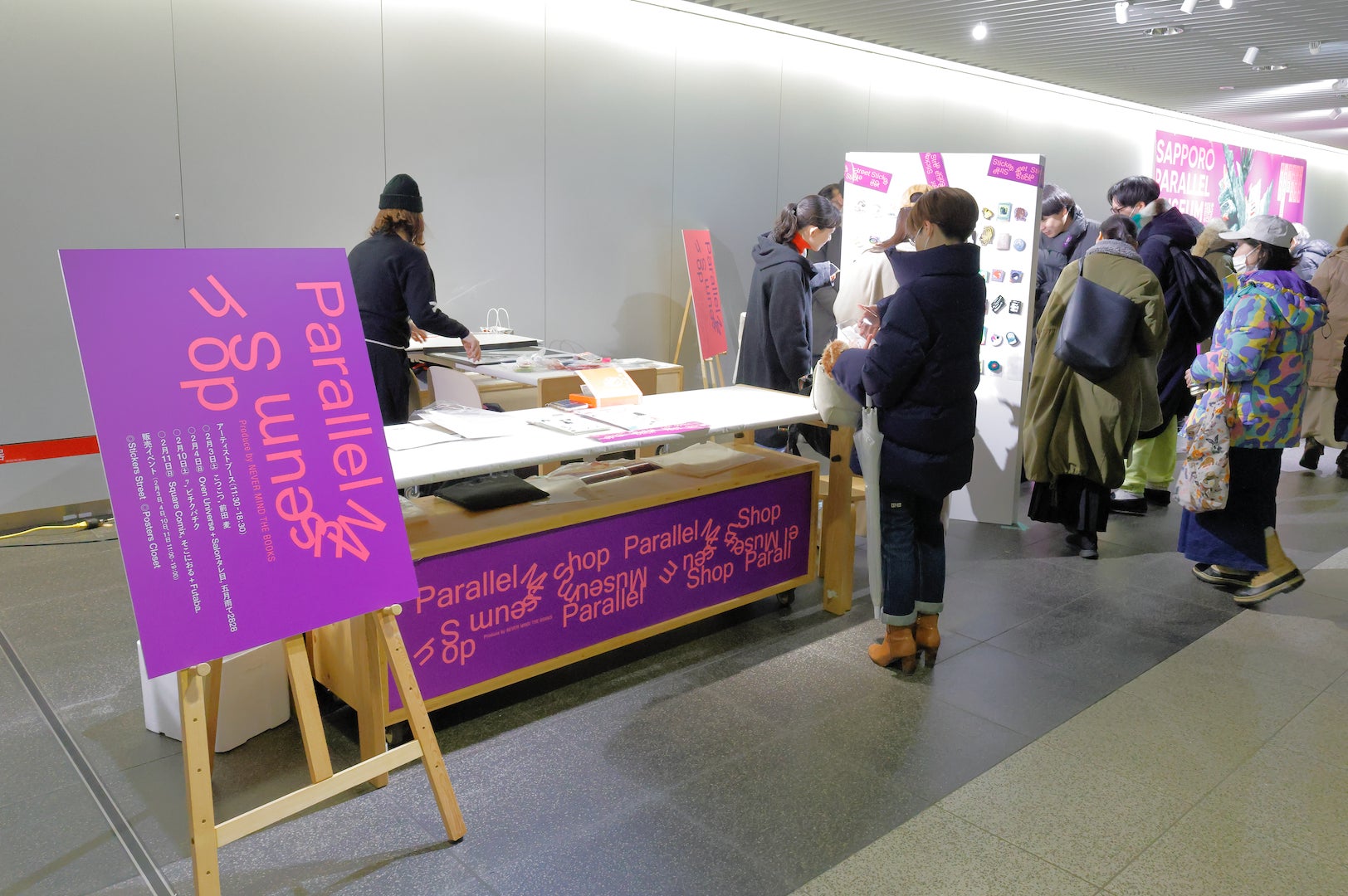 NEVER MIND THE BOOKSは、2011年にはじまった札幌で開催されるZINE・リトルプレス等の展示販売イベントです。制作・プリント・製本まですべて手作りのZINEや小冊子、フリーペーパー、漫画、印刷されたリトルプレスやアーティストブックなど、その内容は多岐にわたり、さまざまなジャンルが展示・販売し、作り手から直接購入することができます。今回は、NEVER MIND THE BOOKSプロデュースのもと、週末のみの「サッポロ・パラレル・ミュージアムショップ」を展開し、札幌で活動する作家の皆さんを紹介します。