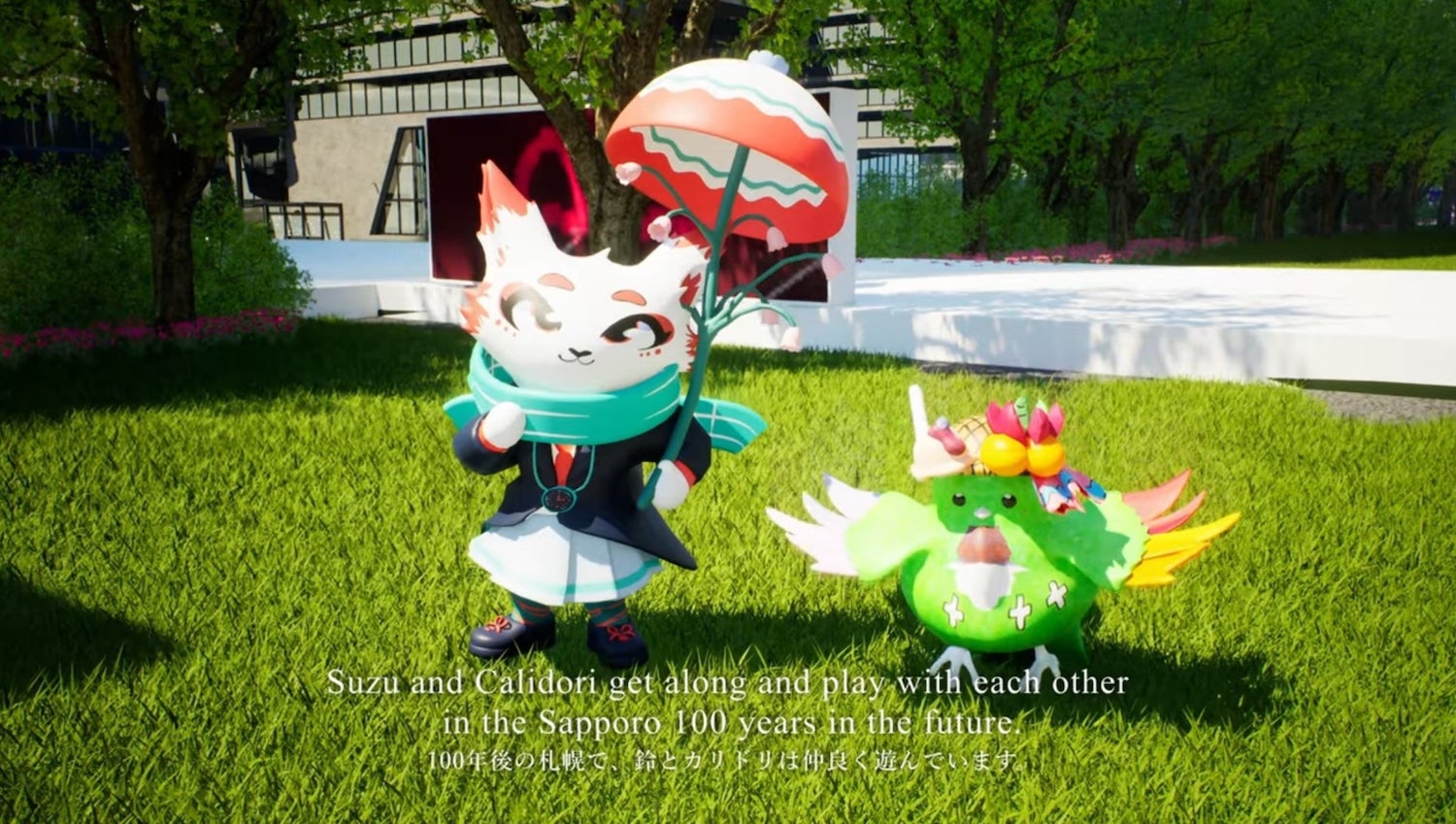 札幌市は、2013年にユネスコ創造都市ネットワークにメディアアーツ分野で加盟して以来、世界の創造都市との文化交流に取り組んでいます。2024年度は、コロンビア・カリ市と連携し、中学生の子どもたちによる交流事業を実施しました。子どもたちは、自分の都市の特徴だと思うキーワード10個を互いに交換し、相手都市の自然や文化・歴史等の調査・学習を経て、相手都市をイメージしたキャラクターをデザインしました。そのキャラクターを札幌市が 3DCG化し、未来のさっぽろで両者が交流をしている様子を短いCG映像で表現しています。