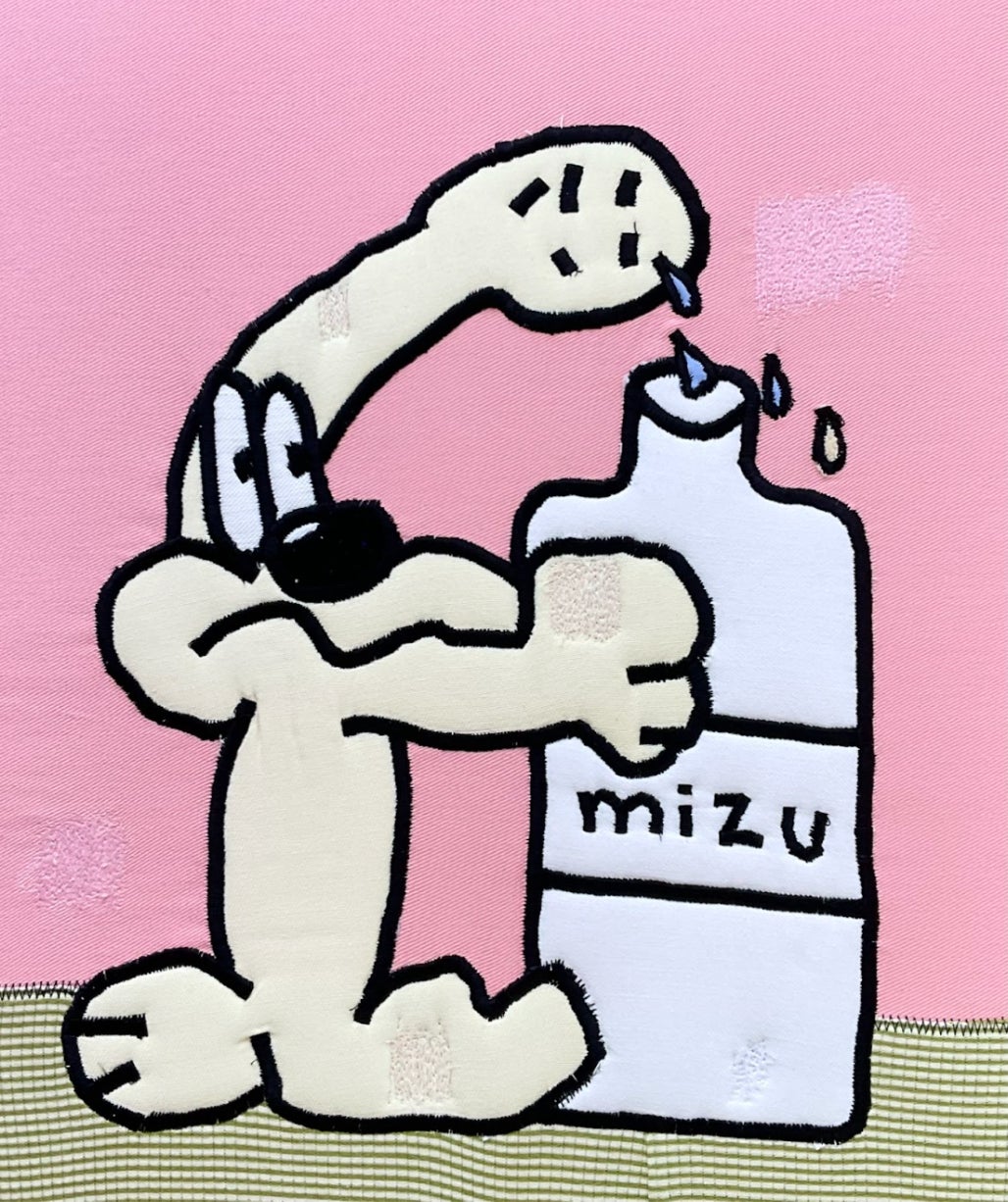 1988年愛知県生まれ。名古屋を拠点に活動。4歳の頃から独学で絵を描き始め、10代ではグラフィティに影響を受け、ライターとしても活動していた。現在はペインティングを軸に、コラージュやドローイング、刺繍、陶芸、タトゥーなど多様な技法を横断的に用いて、自由気儘な表現を編み出している。近年は自身の日常生活での一コマを、独特な言葉遊びの文字と組み合わせて描く日記的作品を中心に制作している。