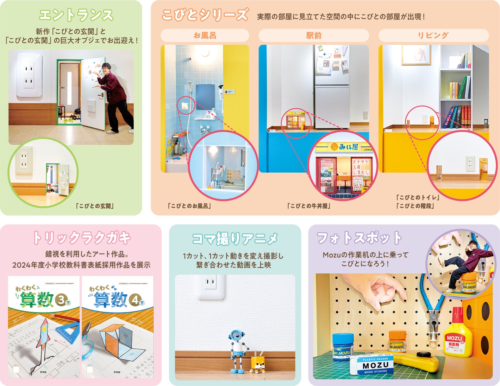 Mozuは、日常の風景をリアルに再現した「こびとシリーズ」などの精巧なミニチュア作品で知られ、SNSの総フォロワー数約150万人を超える人気アーティストです。その活動はミニチュアにとどまらず、コマ撮りアニメやトリックラクガキなど、幅広いジャンルにわたります。