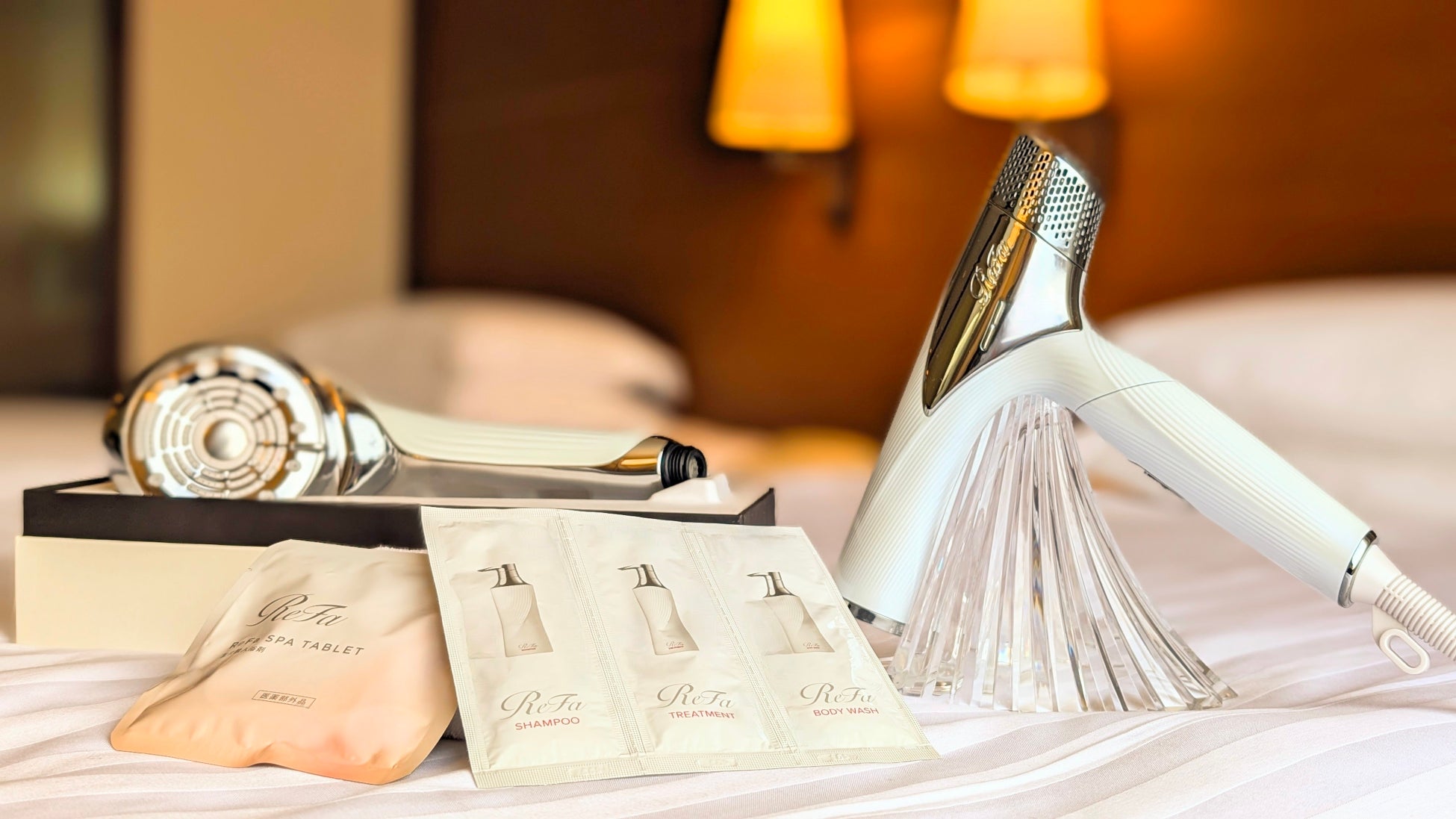 前述のSNSキャンペーンの賞品にもなっているプレミアルームは、当ホテルの客室最上階に位置し、快適にお過ごしいただけるよう美容ブランド「ReFa」のシャワーヘッド『FINE BUBBLE U』と、ヘアドライヤー『BEAUTECH DRYER SMART』を全室に設置しています。さらに「プレミアルーム限定のRefaプラン」もご用意し、さらに滞在中に美容ケアをお楽しみいただける、ReFaバスアメニティセット(シャンプー・コンディショナー・ボディーソープ)と重炭酸入浴剤付きの宿泊プランも新規で販売開始いたしました。