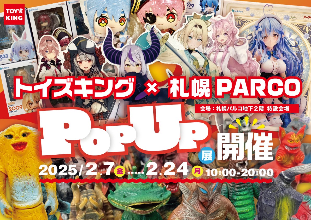 『T-BASE JAPAN』を運営するトイズキング(本社所在地:名古屋市中村区、代表者:山本 祐介)は、2025年2月7日(金)~2025年2月24日(月)まで、トイズキング×札幌PARCO POPUP展を開催します。