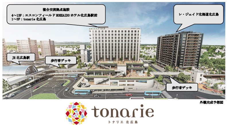 株式会社日本エスコン(本社:東京都港区、代表取締役社長:伊藤貴俊)が、JR「北広島」駅から歩行者デッキで繋がる場所に開発中の複合交流拠点施設(13階建て)のうち、1階から3階を占める地域密着型ショッピングセンター『tonarie北広島』について、2025年3月15日(土)にグランドオープンいたします。加えて、当該施設におけるテナントが決定いたしましたので、下記の通りお知らせいたします。