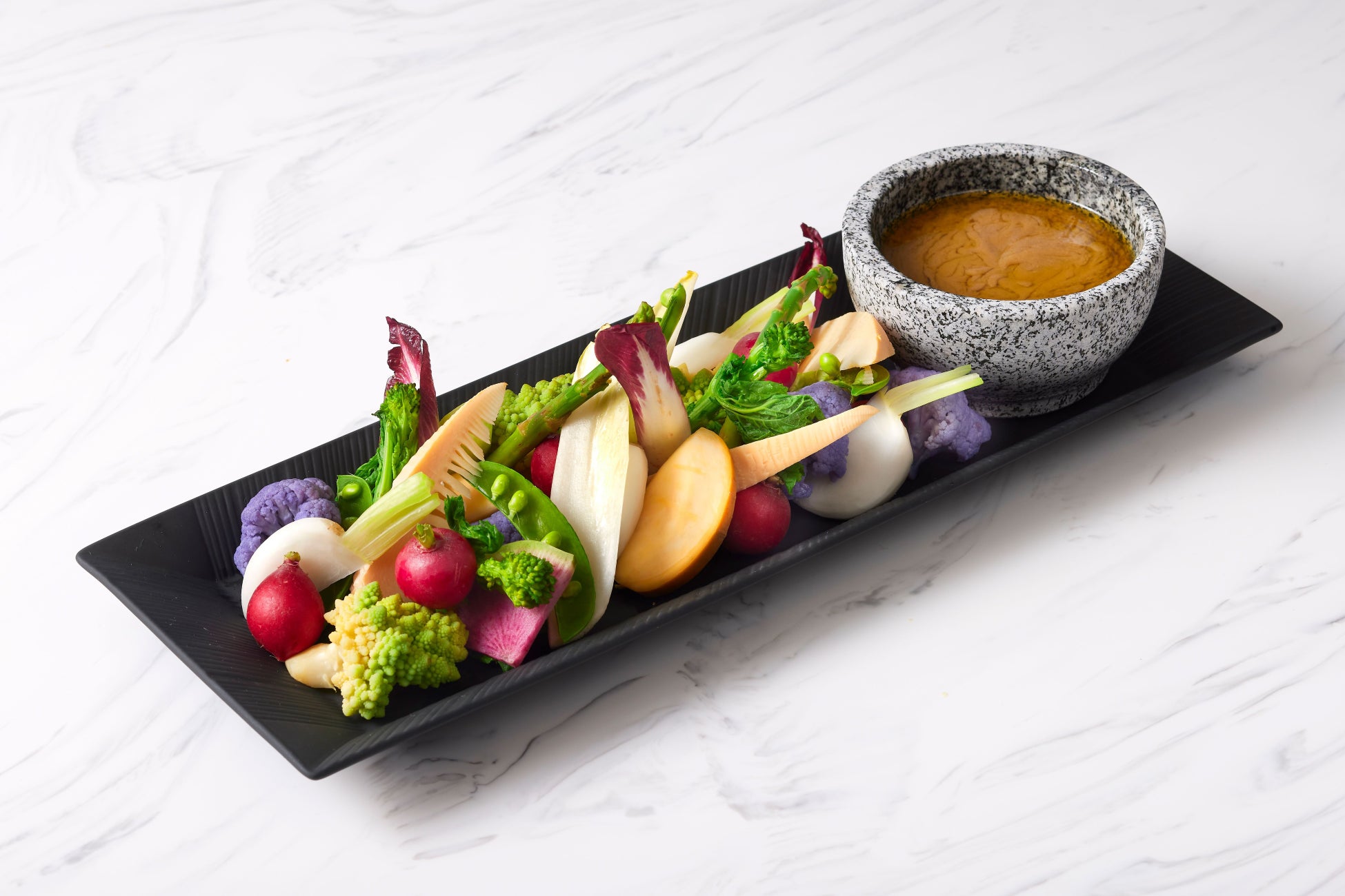 イタリア料理の前菜「アンティパスト」で定番のピエモンテ州の料理。色とりどりの野菜をアンチョビが香る専用ソースと一緒にいただく。