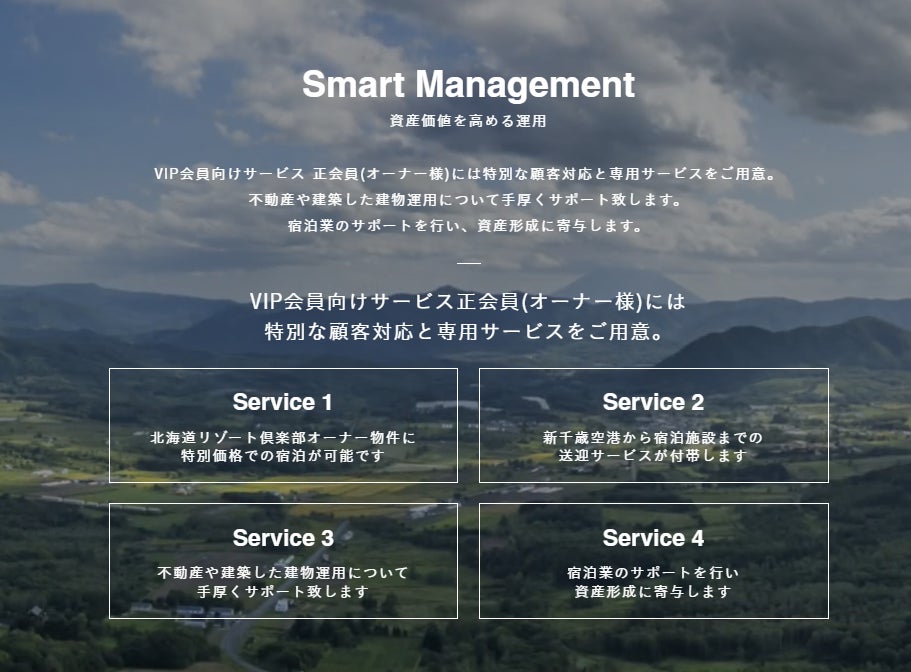 別荘やホテルの取得・管理・運用を、専門家チームが一貫してサポート。北海道での実績に基づき、収益化の支援も行います。魅力ある北海道の不動産活用をトータルでバックアップします。