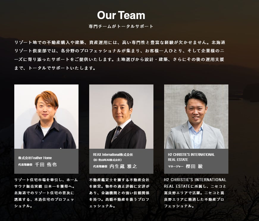 北海道リゾート倶楽部では、「各分野の専門家が専属でサポート」。不動産の所有から運用までを安心して進められる体制を整えています。