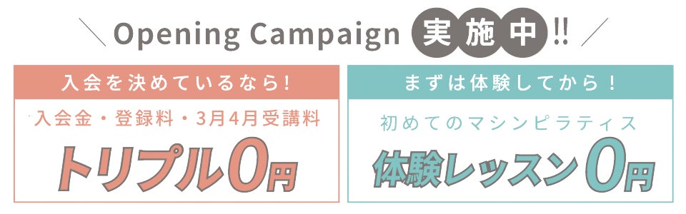マシンピラティスを始めたいけど何を着たらいいかわからない!という方にうれしい『手ぶら無料体験』(※靴下はご持参ください)や、お客様に合わせた選べるキャンペーンを実施中です。