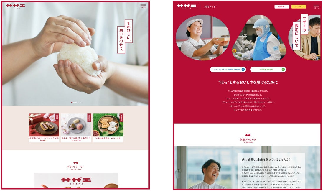 WEBデザインは、サザエのあんこを使用いただいているお客様の声や「サザエの味」のつくり手たちの声など、サザエのこだわりや商品ひとつひとつへの想いを丁寧に伝えるオウンドメディアサイトを構築。記事コンテンツにも注力し、サザエのこと、あんこのこと、おむすびのことなど、サザエをたくさんの方に知っていただけるようデザインしています。