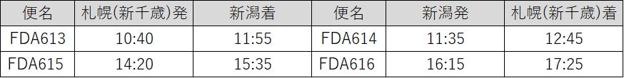 FDA 新路線『札幌(新千歳)=新潟』『福岡=札幌(新千歳)』線の運航開始について