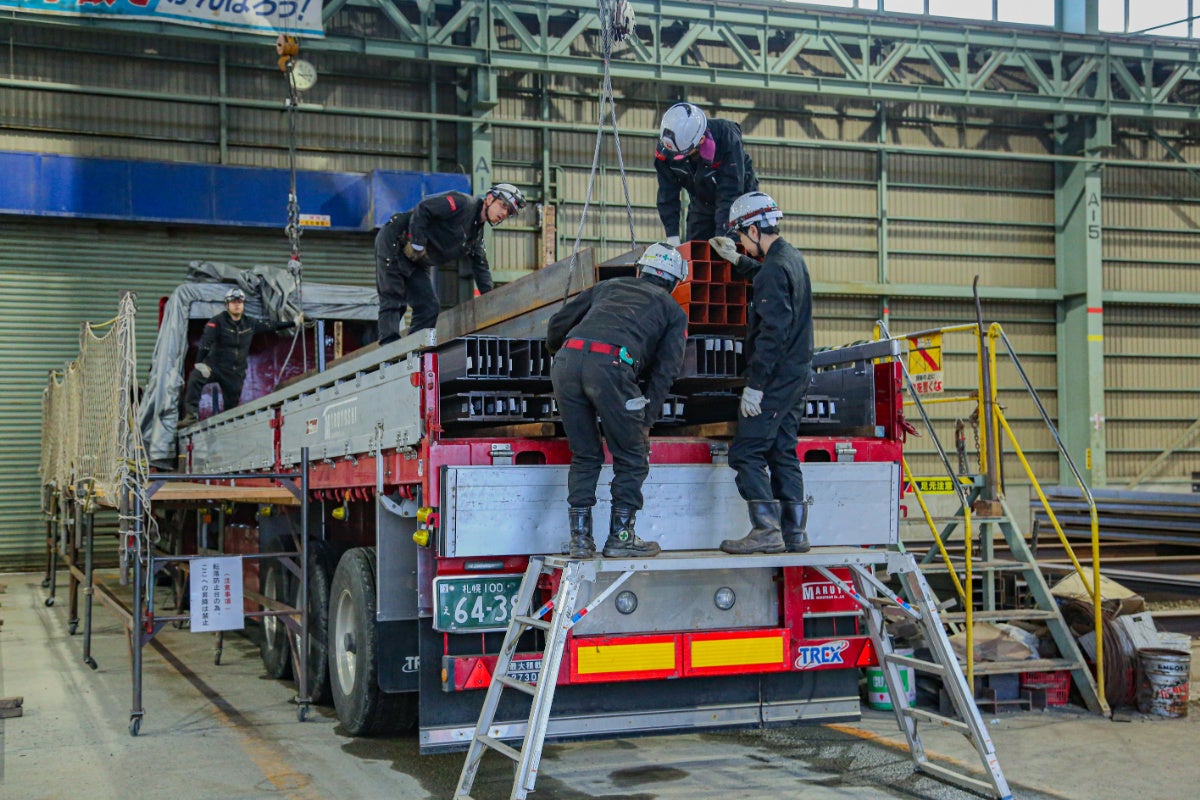「弊社は2カ所 3カ所と納品する事もあるので、その度にシートの掛けおろしをしなくて済むのが本当に利点です。さらに倉庫で積み荷渋滞を起こさないため、鉄の納品先でもありがたいというお声を頂きます。」