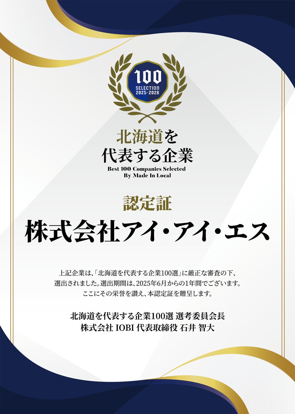 株式会社アイ・アイ・エス(代表取締役社長:山田聡、本社:北海道札幌市)は、運営する調査会社「さくら幸子探偵事務所」(https://www.sakurasachiko.jp/) が、地方創生メディア「Made In Local(メイドインローカル)」地方創生メディア「Made In Local」が選定する「地域を代表する企業100選」にて、北海道エリアの企業100選の認定を受けました。