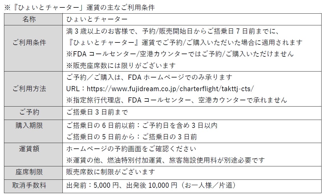 この機会にFDAのチャーター便で、北海道・中四国へお出かけください。