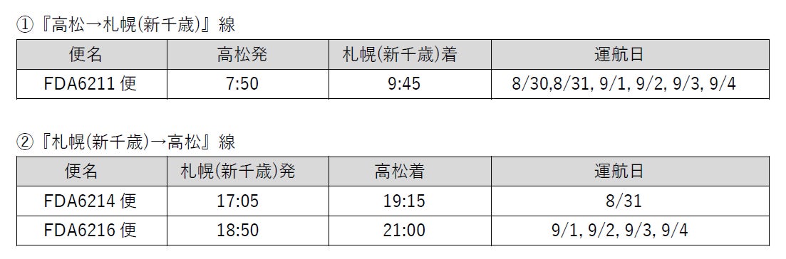 ■『高松=札幌(新千歳)』線の運航ダイヤについて