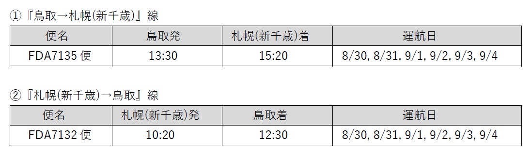 ■『鳥取=札幌(新千歳)』線の運航ダイヤについて