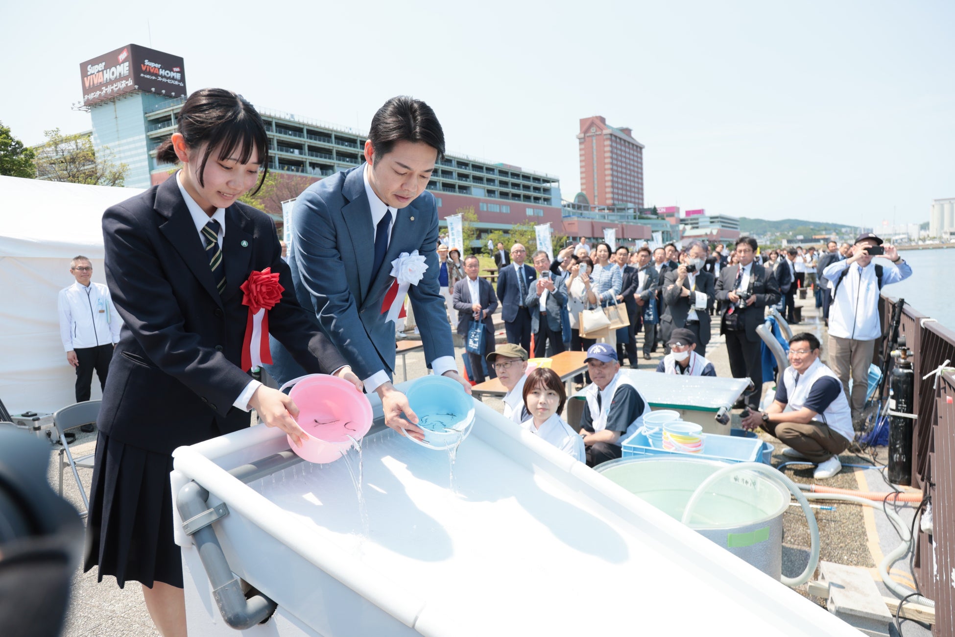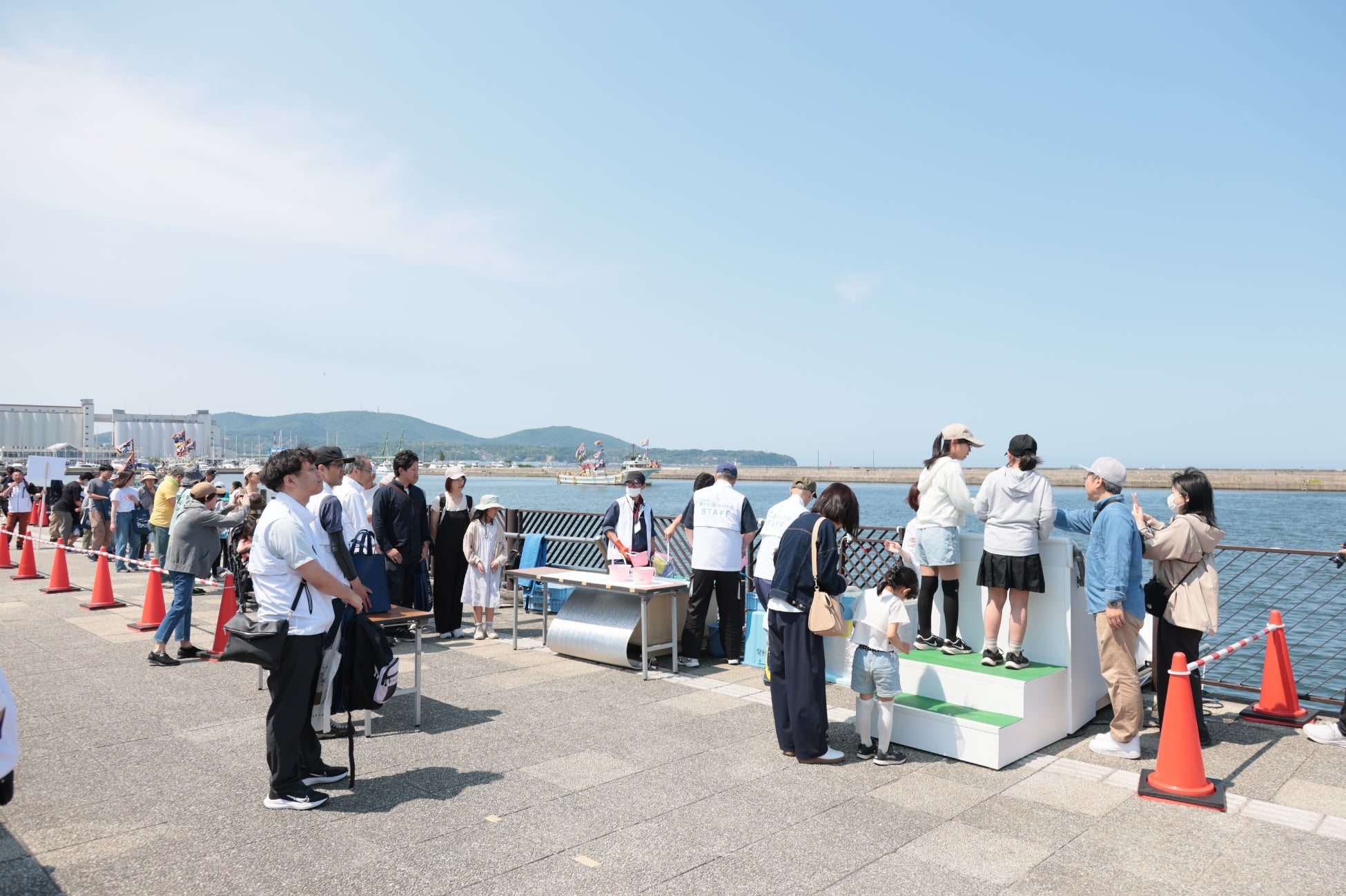 グランドパーク小樽では記念式典、築港臨海公園では稚魚放流行事、ウイングベイ小樽では地元水産物等の物販・展示、海や環境に関する体験・ワークショップ、小樽港第3号ふ頭では官公庁船の一般公開を行いました。