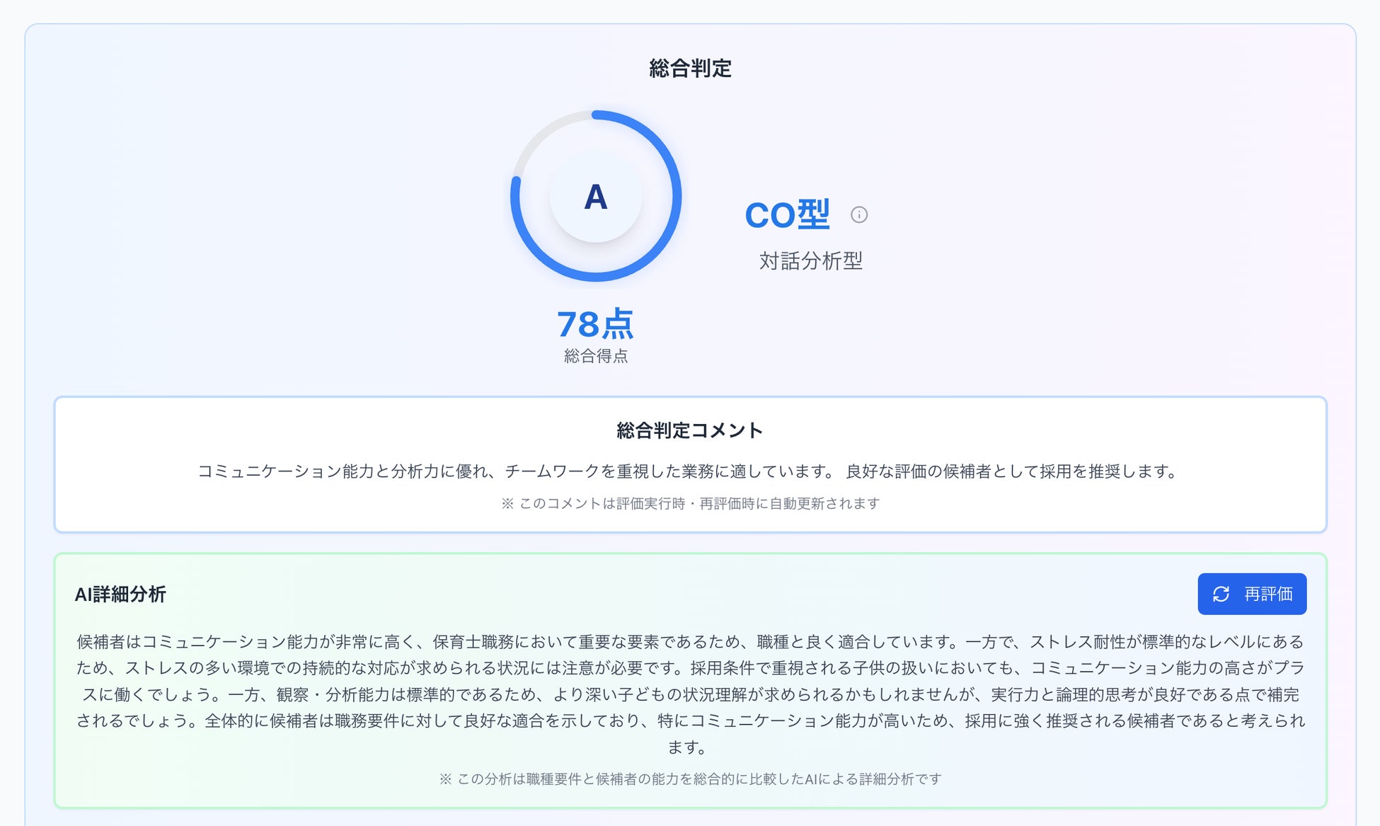 園長先生からは「直感だけに頼らず、客観的な裏付けをもとに採用判断ができるようになった」との声が寄せられています。