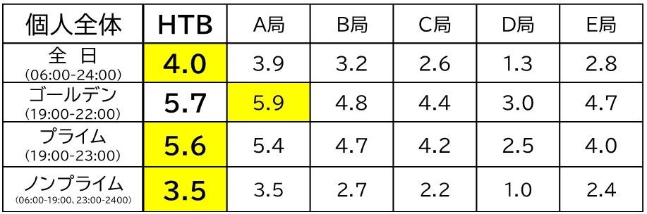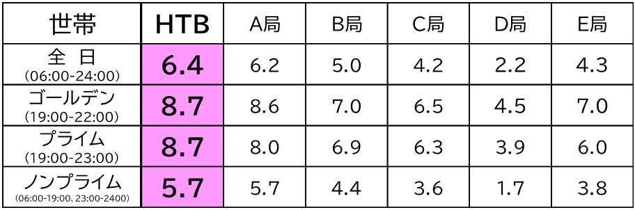 HTB北海道テレビ放送は、2025年「年間」の札幌地区視聴率において、個人全体視聴率(4才以上)は全日・プライム・ノンプライムの三冠!世帯視聴率は全日・ゴールデン・プライム・ノンプライムの4冠に輝きました!世帯視聴率のノンプライム1位は、開局以来初!