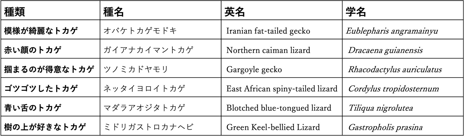 ◉ 6F「GREEN ROOM」のトカゲ展示で観察できる種類